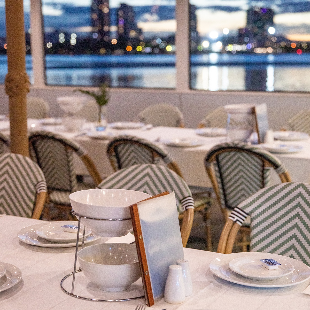 Kick back in the main cabin and enjoy air-conditioned comfort with our inside seating option. With large viewing windows framing the cabin, enjoy your meal against the backdrop of the stunning Gold Coast.