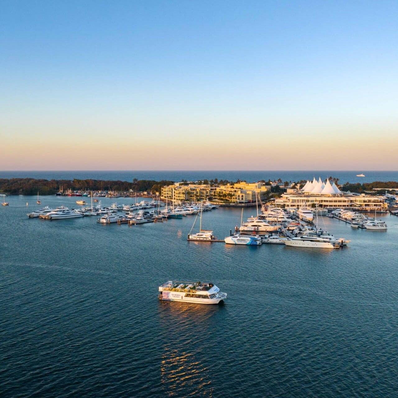 Please check-in at least 20 minutes prior to your cruise departure time, at the Sea World Cruises Terminal in Main Beach. Follow directional signage when entering the Sea World car park. Entry to Sea World Marine Park is not required. Arrive early and enjoy a drink on our sunset deck!